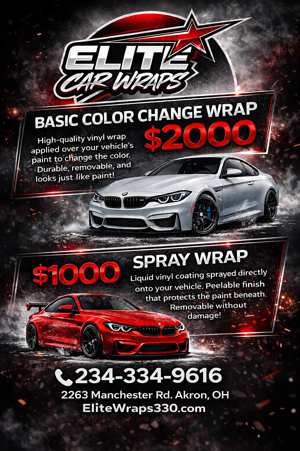Akrons own full-service custom shop. Elite Wraps specializes in complete color change wraps for your car, and professional window tinting. We also offer high-quality detailing to keep your vehicle looking its best. Contact us to explore thousands of color options!